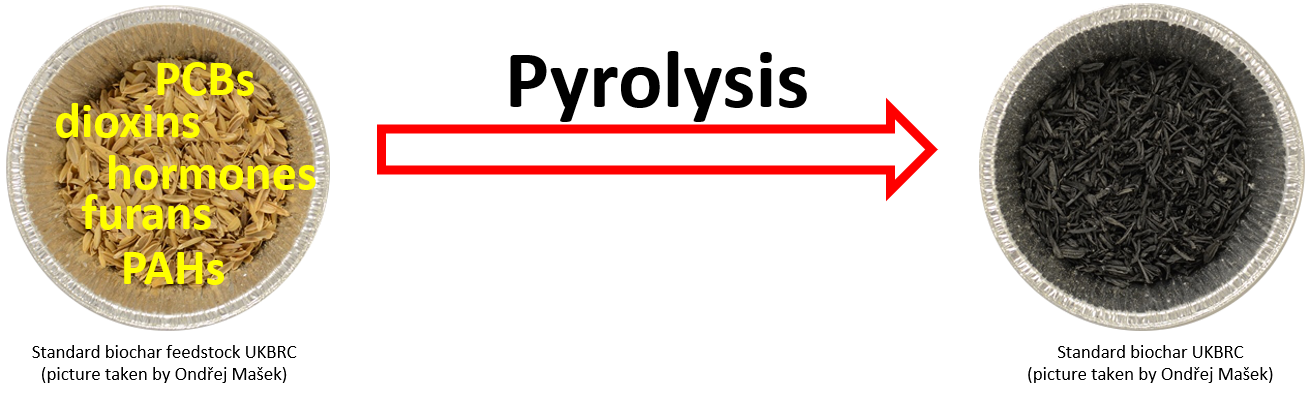 Pyrolysis destroys contaminants in the feedstock, such as PCBs, dioxins, furans, PAHs and even pharmaceuticals, e.g. hormones.